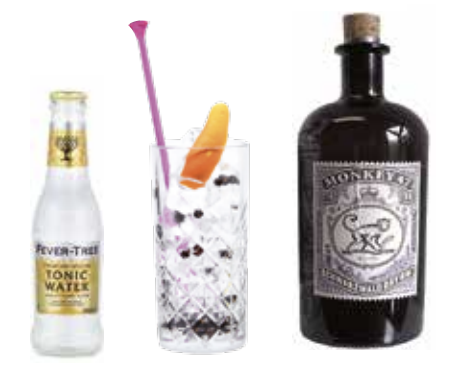 (Red fruits) Fever-Tree Tonic Water. English gin, unique in the world, extremely smooth in the mouth with sweet juniper berry and citrus notes. Our most exotic gin.